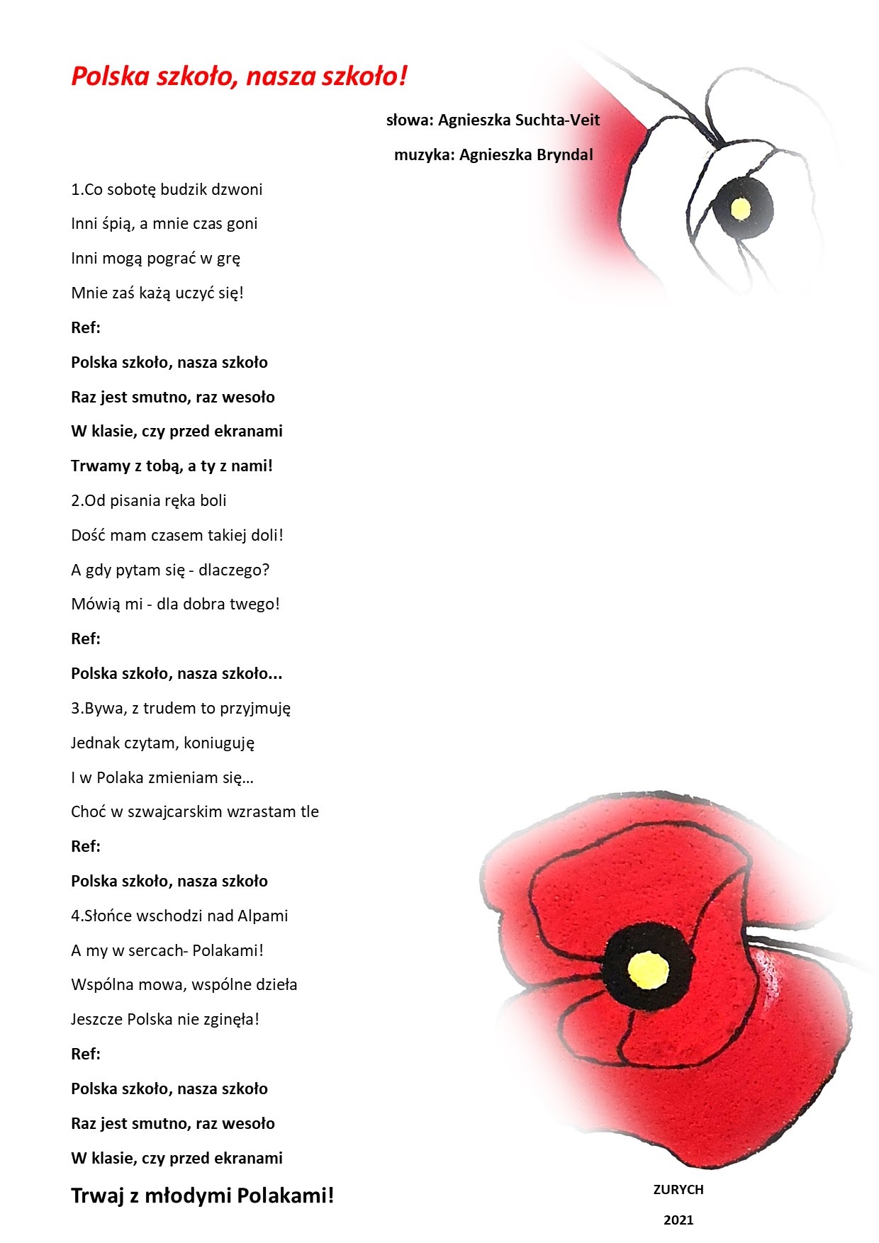 - Nagranie piosenki „Polska szkoło, nasz szkoło” (tekst: A. Suchta-Veit)