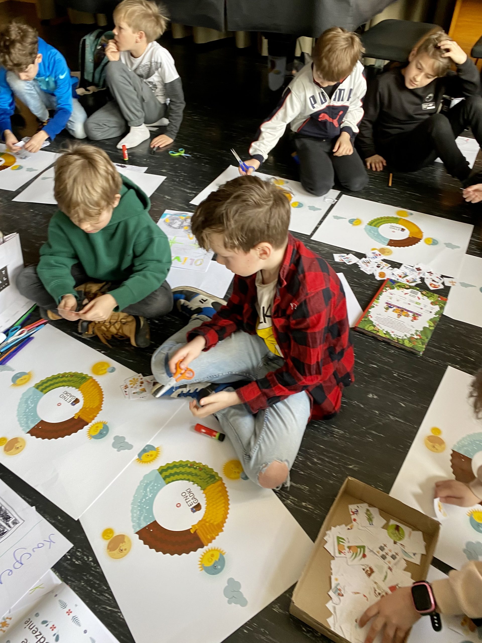 Dzieci z dużym zaciekawieniem i aktywnym udziałem w dyskusji miały możliwość zapoznania się z wieloma obrzędami polskimi. Pani Monika wciągnęła maluchy w klimat dawnej epoki, opowiadając żywo, trochę tajemniczo i baśniowo, o tym jak mieszkańcy małych wiosek żyli w zgodzie naturą. Dodatkową atrakcją były zajęcia kreatywne- tworzenie przez uczniów własnych zegarów wyznaczających pory roku i połączenie człowieka z naturalnym cyklem zmian w przyrodzie.