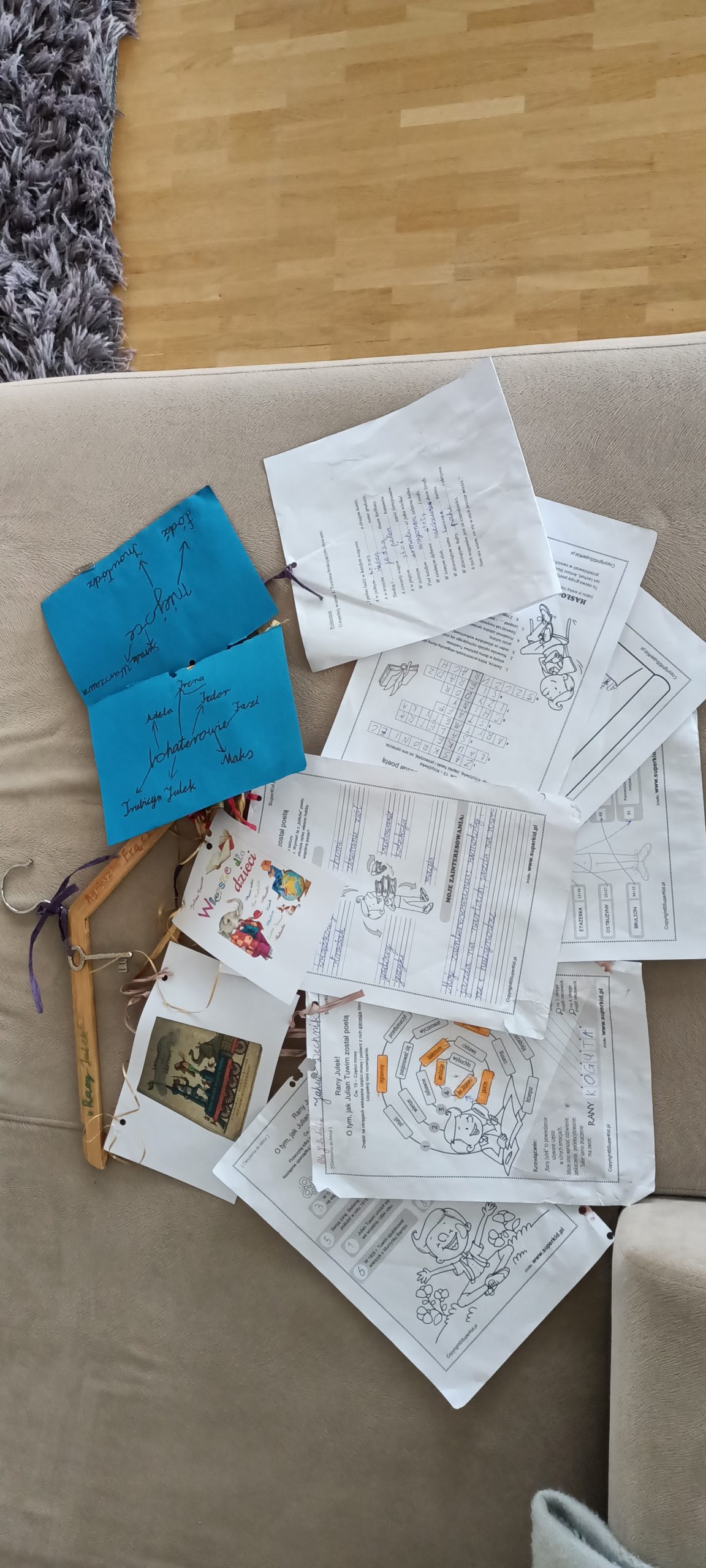W ramach pracy z książką A. Frączek Rany Julek uczniowie klas trzecich przygotowali lekturowe wieszaki.