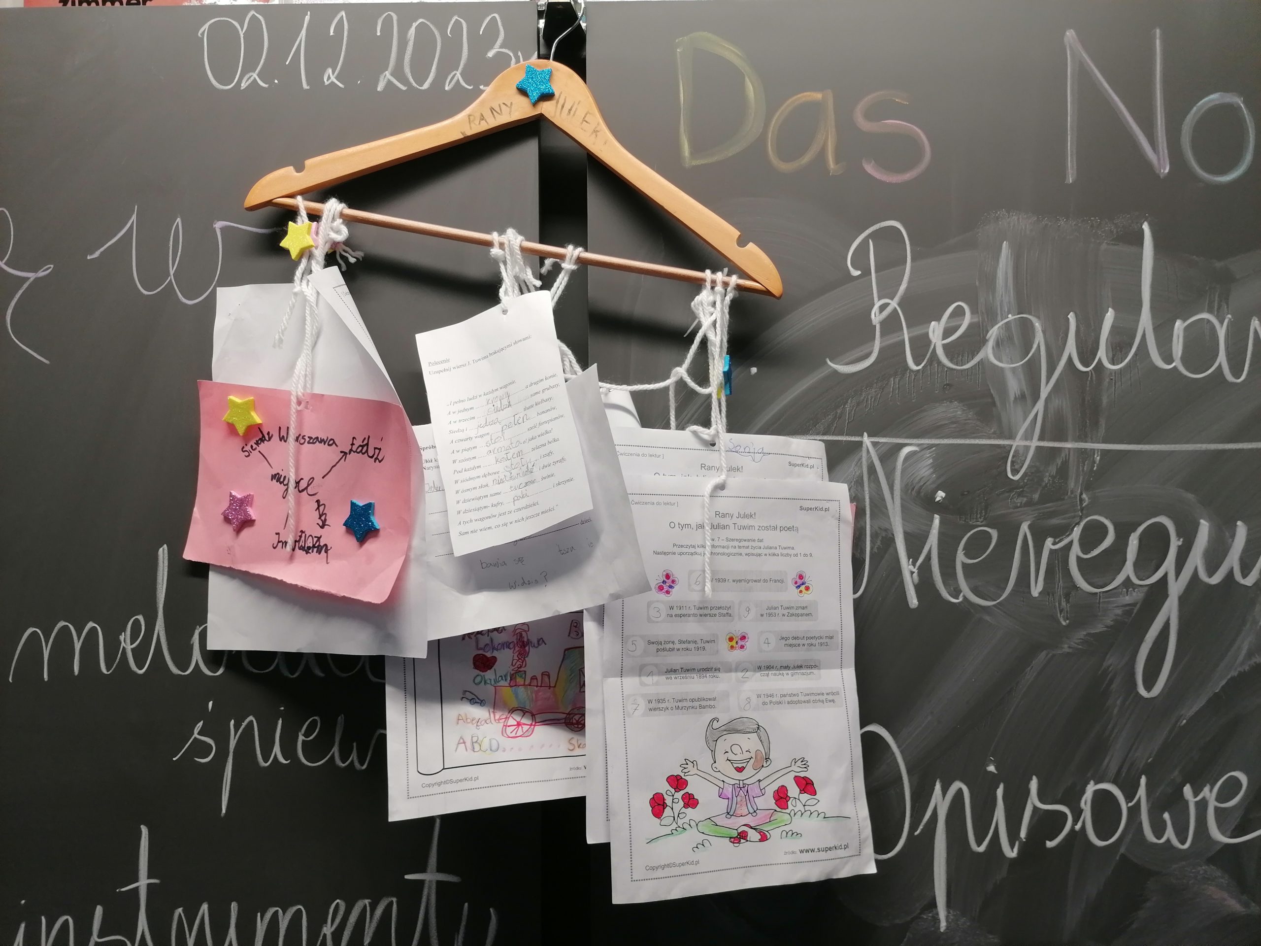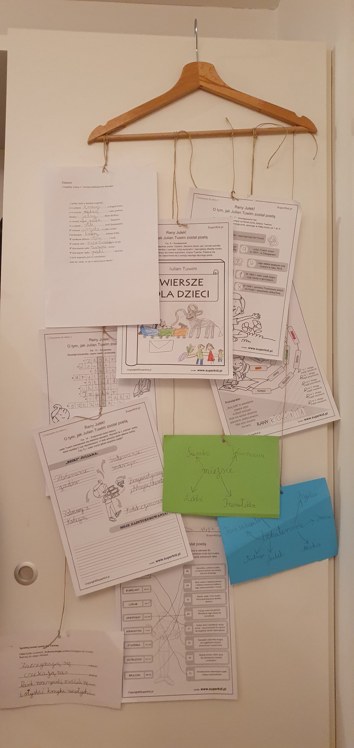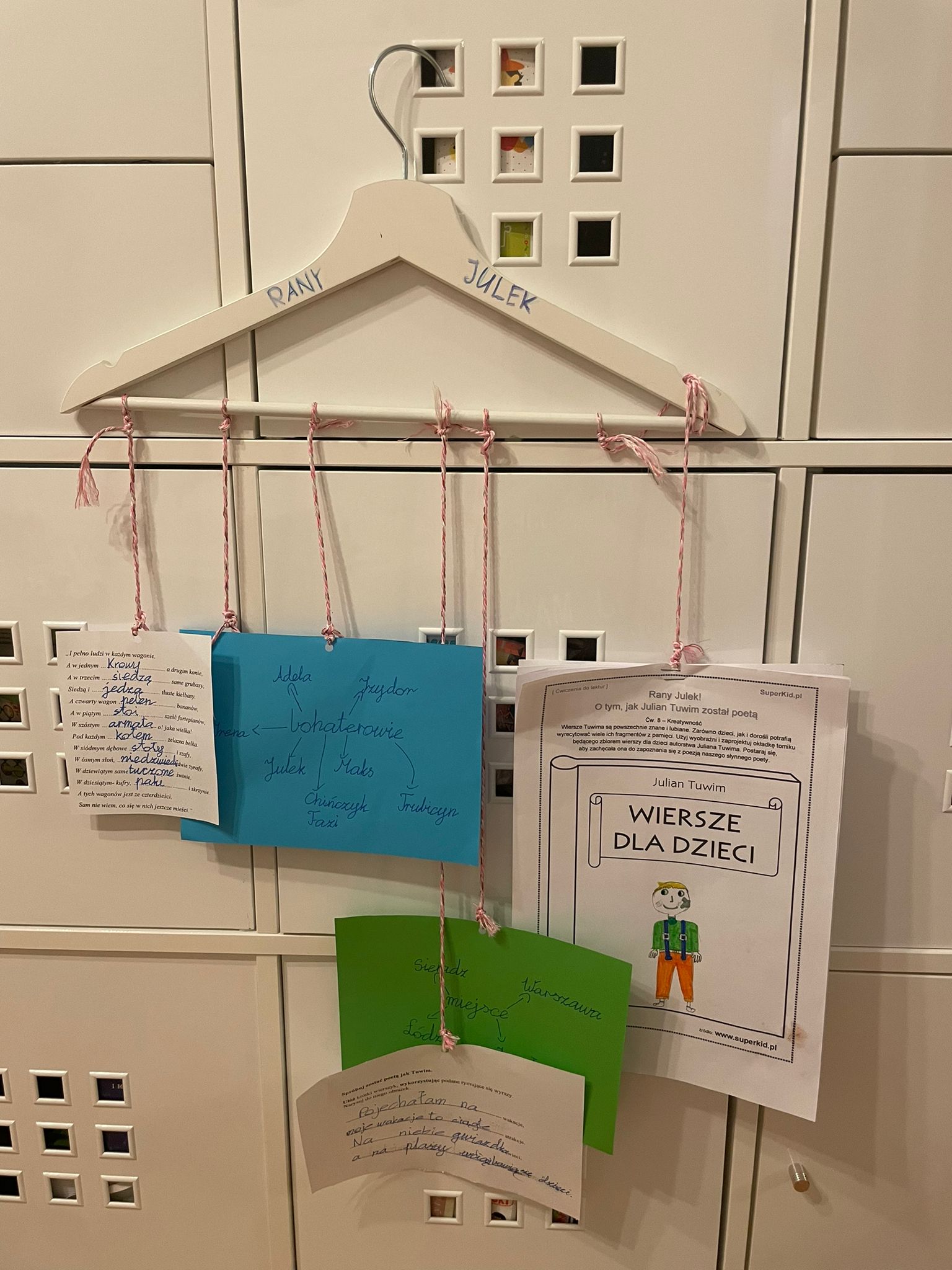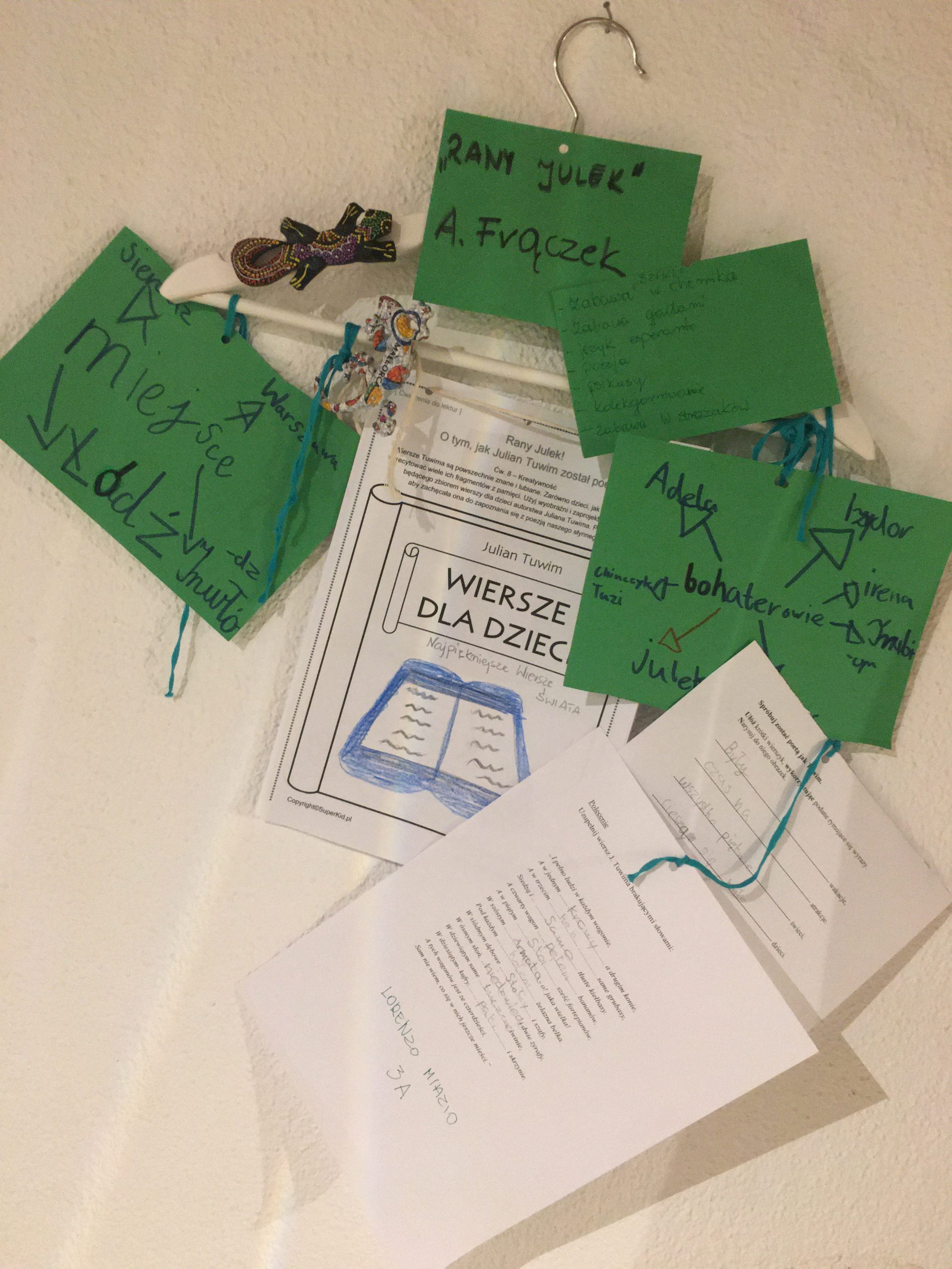 Zawiesili na nich karty pracy, rekwizyty związane z lekturą oraz własne wiersze. Zebrali informacje o autorze, bohaterach i wydarzeniach.