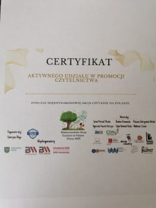W sobotę 7 czerwca uczniowie klas I-III wzięli udział w międzynarodowej akcji „Czytanie na Polanie”. Celem akcji była promocja czytelnictwa wśród dzieci oraz zachęcenie uczniów do sięgania po książkę w każdej sytuacji i każdym miejscu.