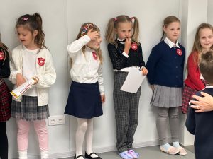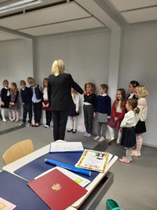 Uroczyste ślubowanie złożyły dzieci z klasy IA i IB, obiecując być pilnymi i wzorowymi uczniami, wypełniać obowiązki i zadania ucznia, dbać o dobre imię swojej klasy i szkoły, godnie i kulturalnie się zachowywać, szanować dorosłych i pomagać innym kolegom, a swoim zachowaniem i nauką sprawiać radość rodzicom i nauczycielom.