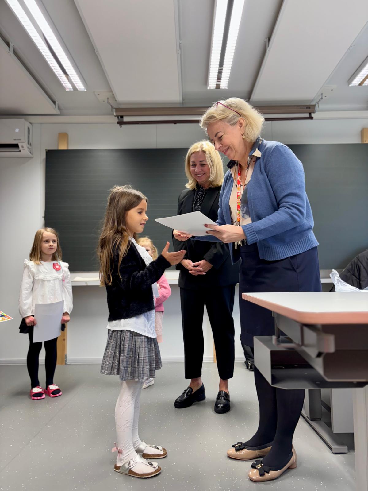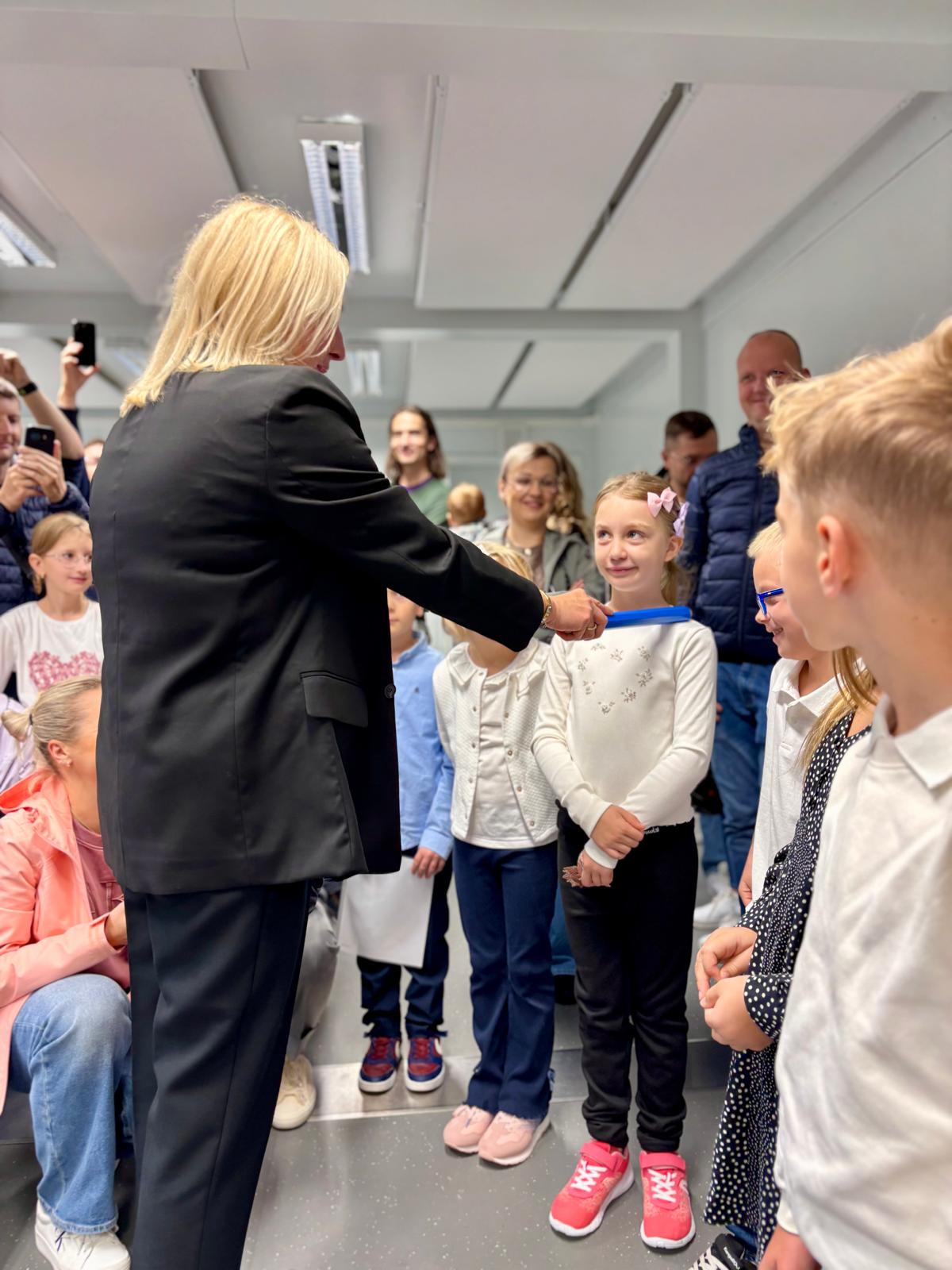 Nowych uczniów przywitali starsi koledzy z klasy 4b, dodając im otuchy na nowej drodze odkrywania tajników nauki.