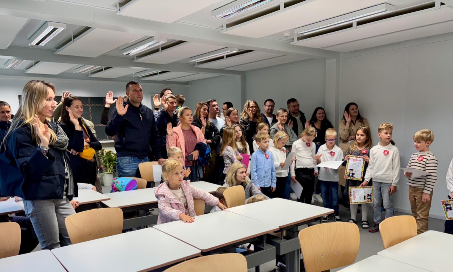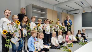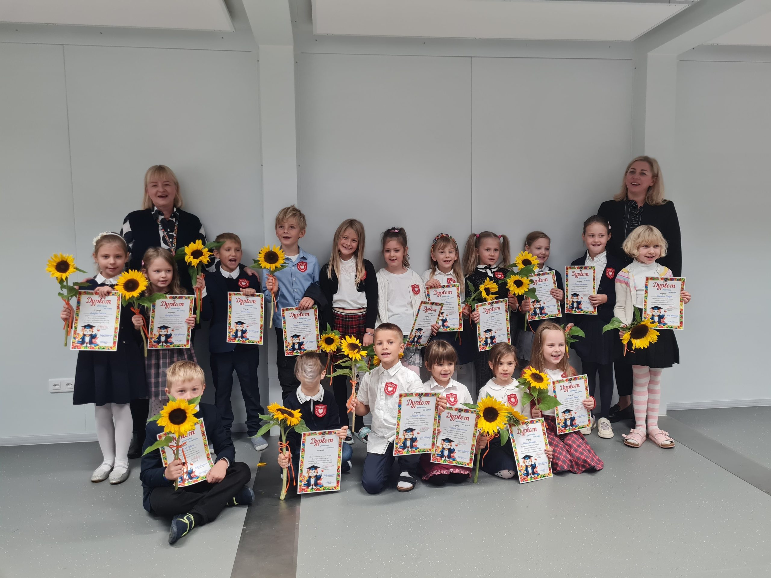 Dumni pierwszoklasiści otrzymali dyplomy, szkolne tarcze oraz słoneczniki. Rodzice również złożyli swoje ślubowanie. Przyrzekali wspierać swoje dzieci w rozwoju oraz cieszyć się ich każdym krokiem i postępem czynionym w zdobywaniu wiedzy i umiejętności.